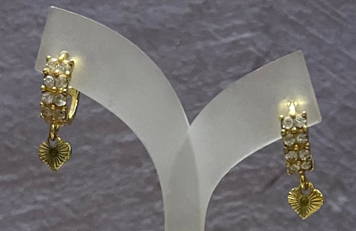 Ajoutez une touche d'élégance avec ces boucles d'oreilles dorées ornées de cristaux scintillants et de pendentifs en forme de cœur. Parfaites pour un look chic et sophistiqué, elles sublimeront vos tenues de soirée ou vos rendez-vous importants. Un cadeau idéal pour exprimer votre amour!