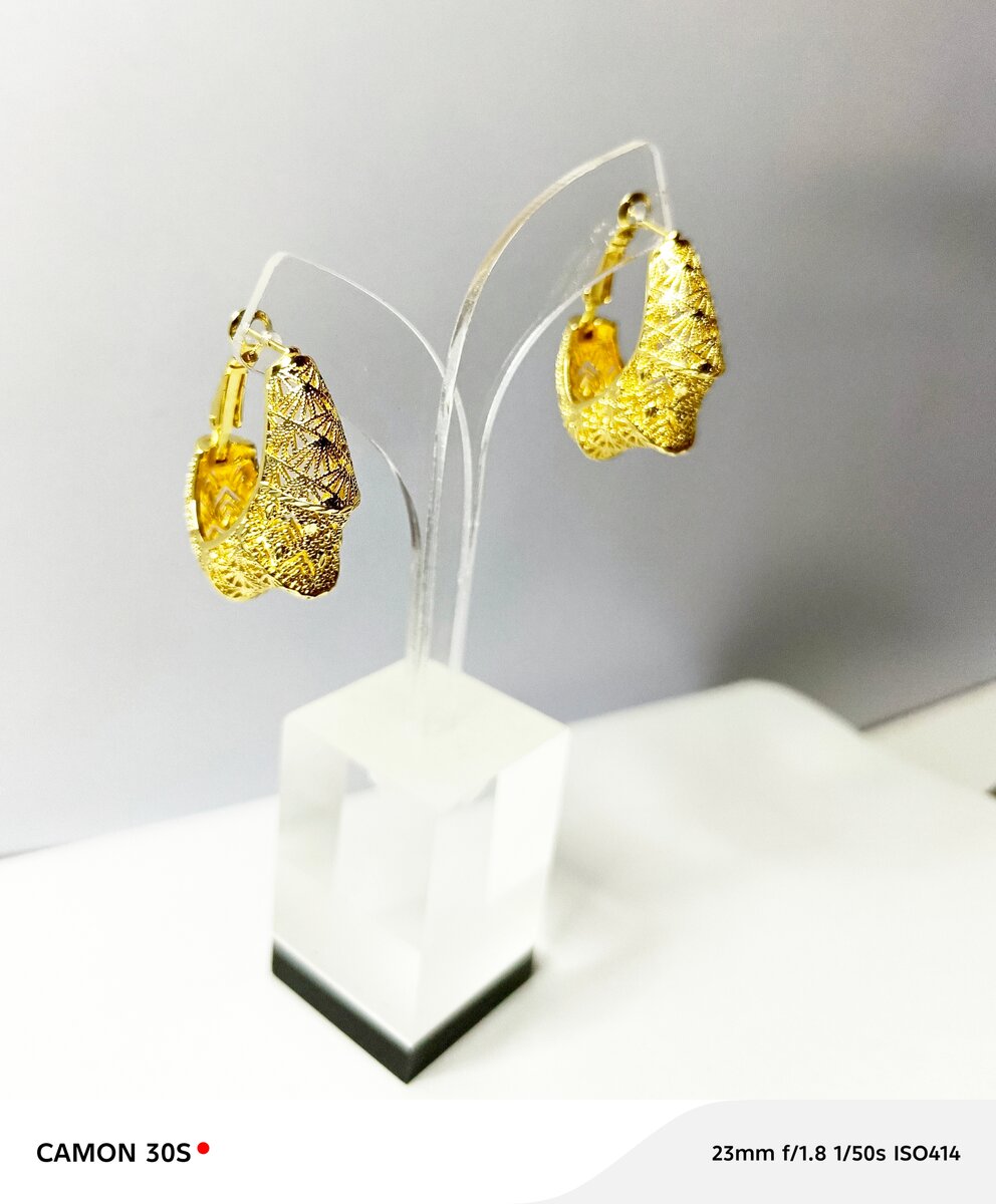 Apportez une touche d'éclat à votre tenue avec ces magnifiques boucles d'oreilles en doré. Parfaites pour toute occasion spéciale, elles se distinguent par leur design unique et moderne. Un choix idéal pour sublimer votre style.