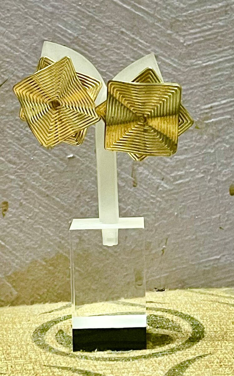 Découvrez ces boucles d'oreilles dorées au design géométrique exceptionnel, idéales pour ajouter une touche d'élégance à votre tenue. Fabriquées avec soin, elles sont parfaites pour les occasions spéciales ou pour un usage quotidien. Ne passez pas à côté de cet accessoire élégant et original!