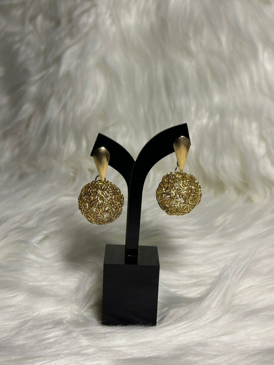 Ajoutez une touche d'élégance avec ces boucles d'oreilles dorées ornées de détails complexes. Parfaites pour des occasions spéciales ou pour rehausser votre look quotidien, elles attirent le regard et apportent une finition sophistiquée à n'importe quelle tenue.