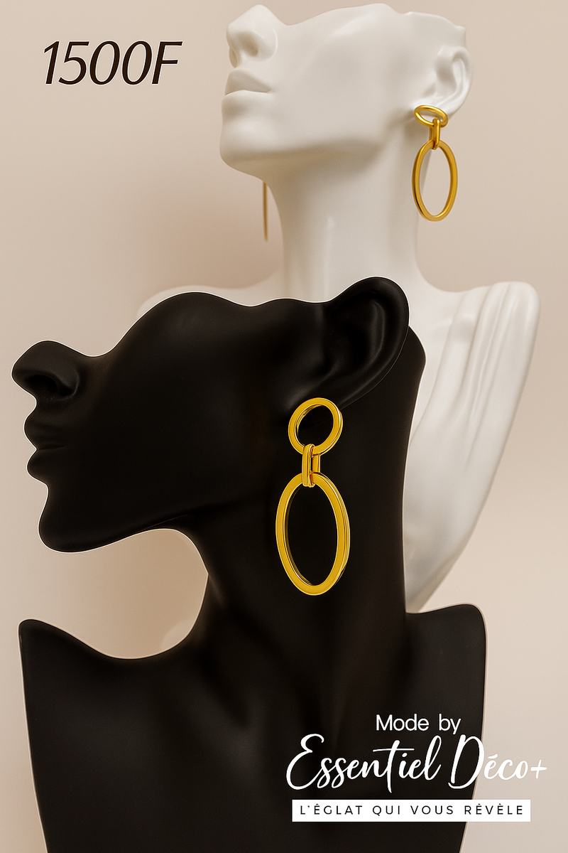 Ajoutez une touche d'élégance à votre tenue avec ces magnifiques boucles d'oreilles dorées. Idéales pour toutes les occasions, elles complètent parfaitement votre style avec un design moderne et raffiné. L'accessoire indispensable pour briller!