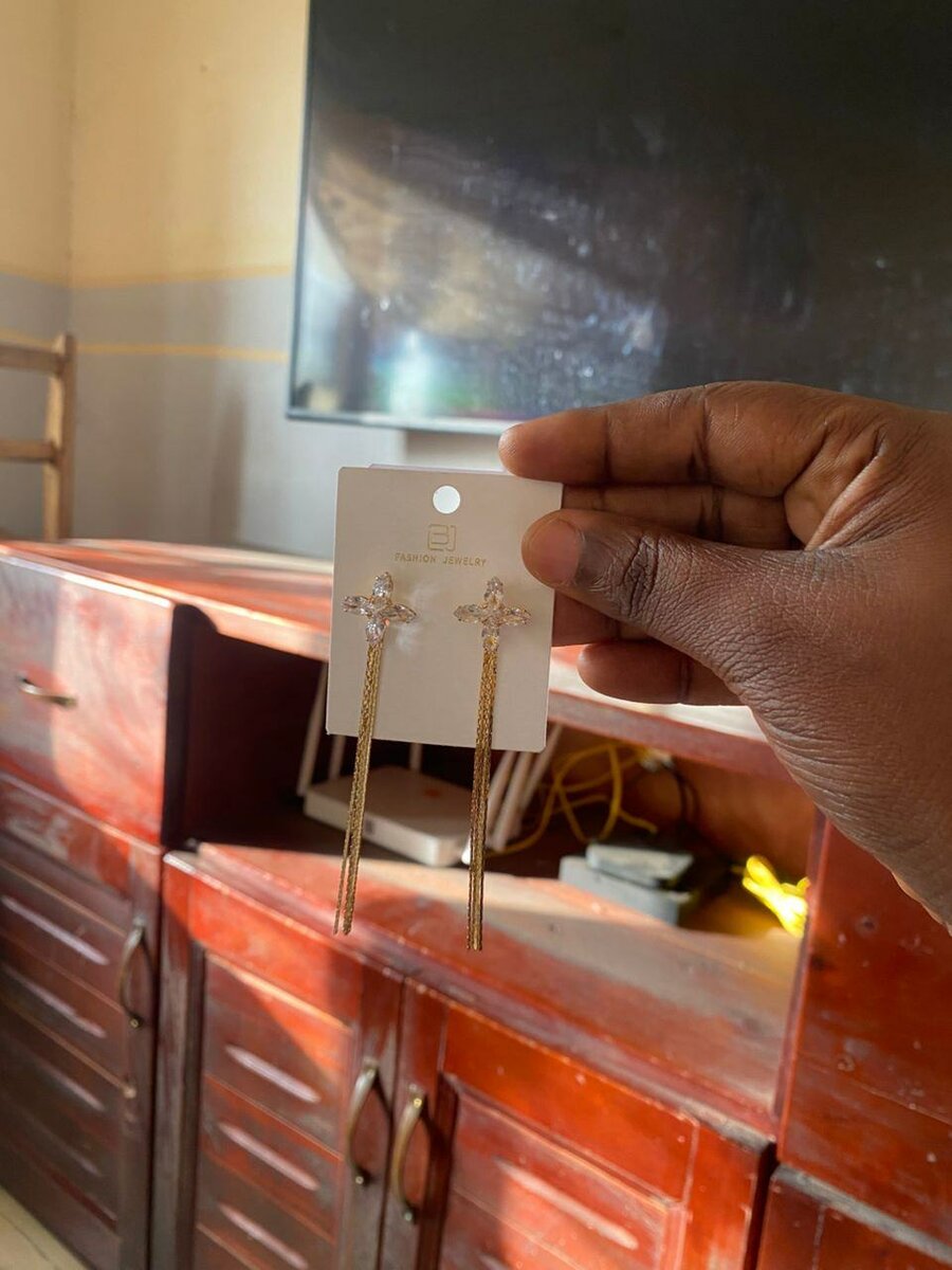 Éblouissez avec ces boucles d'oreilles pendantes en forme d'étoile ornées de cristaux scintillants et chaînes dorées. Idéales pour ajouter une touche d'élégance à toute tenue. Parfaites pour soirées et occasions spéciales.