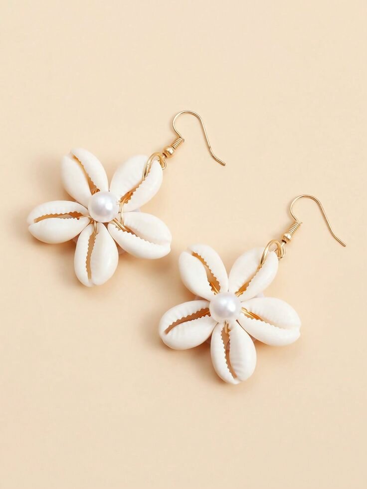 Ajoutez une touche nautique à votre tenue avec ces boucles d'oreilles en forme de fleurs avec coquillages et perles. Idéales pour l'été, elles apporteront une élégance naturelle à votre look.