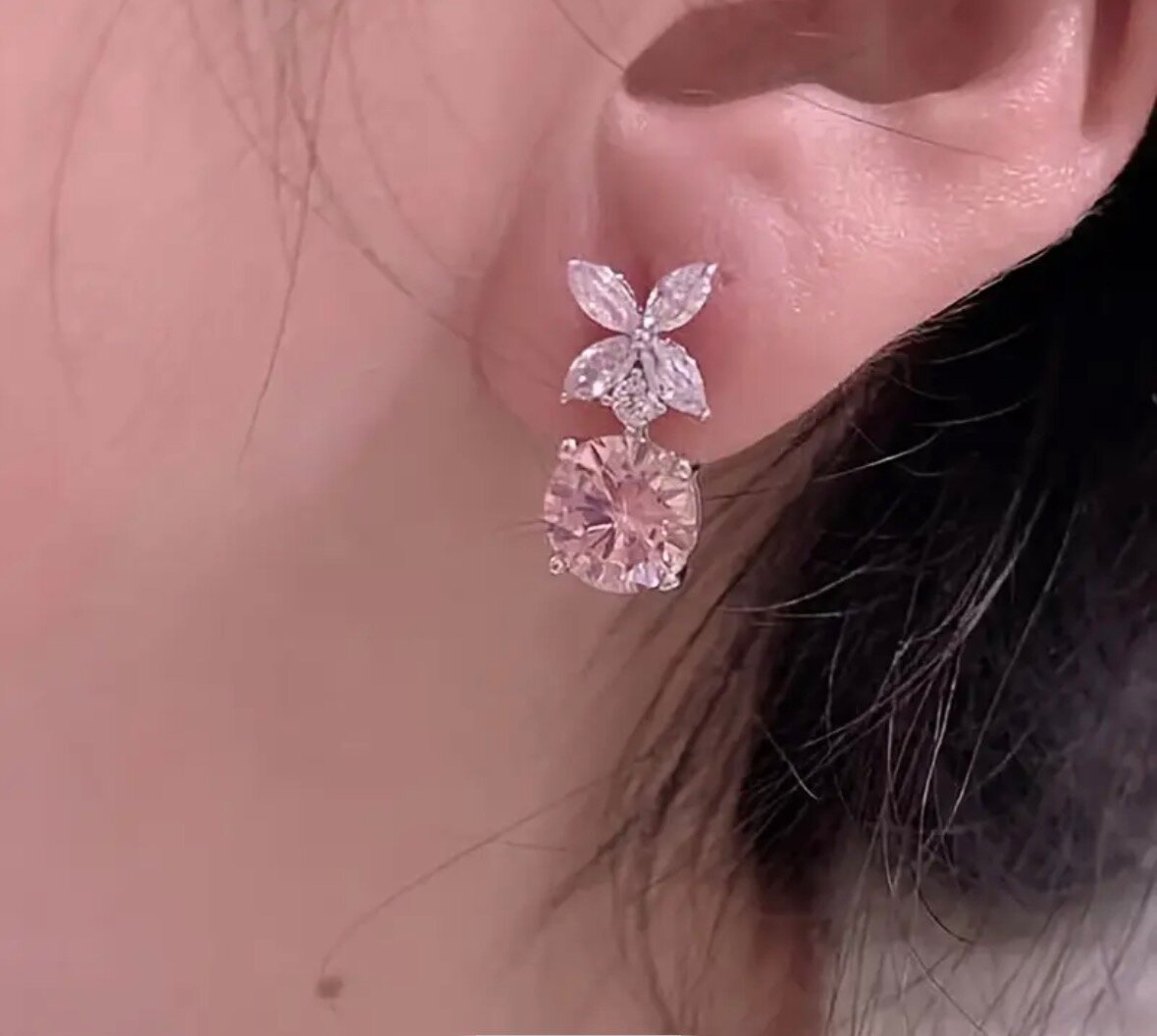 Découvrez ces boucles d'oreilles raffinées, ornées de zircons roses et d'un motif floral scintillant. Parfaites pour ajouter une touche de glamour à toute tenue. Un accessoire incontournable pour vos soirées spéciales.