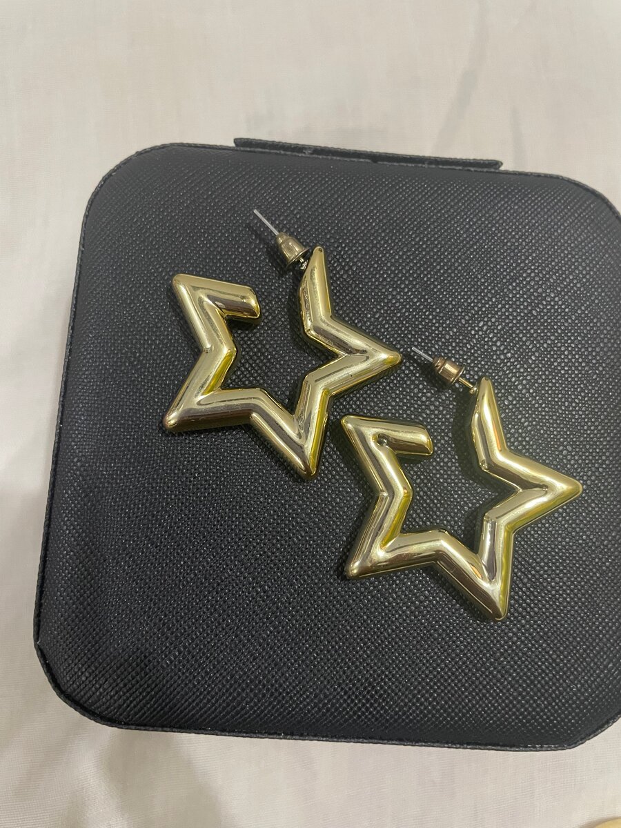 Ajoutez une touche de glamour avec ces élégantes boucles d'oreilles en forme d'étoile dorée. Idéales pour une soirée ou pour illuminer votre style quotidien. Un must-have pour toutes fashionistas!