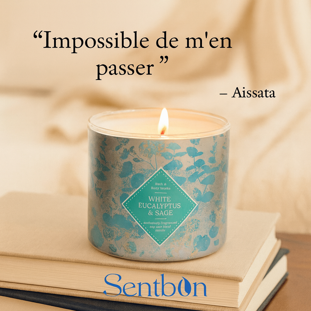 Une bougie parfumée bath and boy works alliant eucalyptus et sauge pour une ambiance relaxante. Parfaite pour la maison, les chambres et les spas. Offrez-vous un moment de détente ultime avec cette bougie élégante et fragrance pure.