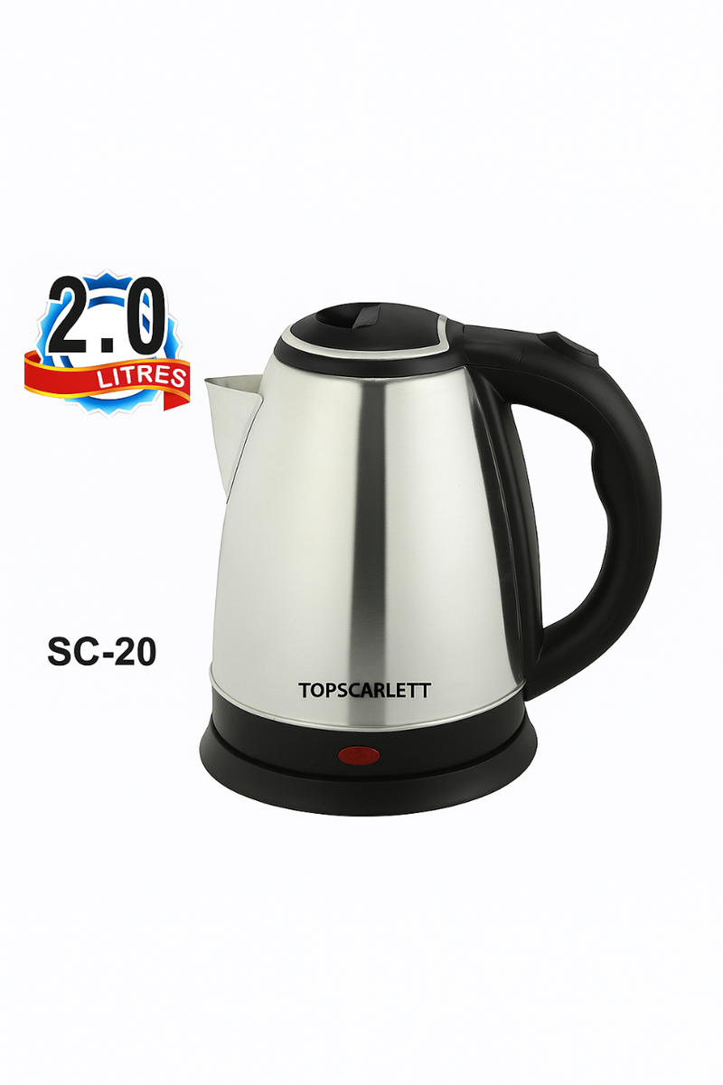 Découvrez la bouilloire électrique TopScarlett d'une capacité de 2 litres, parfaite pour chauffer rapidement votre eau. Avec son design en acier inoxydable, elle est robuste et élégante pour s'adapter à toute cuisine moderne. Idéale pour le thé, le café ou les soupes instantanées. Un choix pratique et efficace!