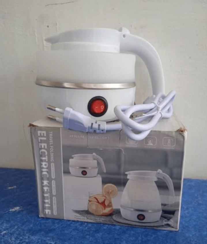 Bouilloire électrique pliable en silicone arrête automatique après chauffage capacité 600ml. Poids : 0.5kg Capacité : 0.6L