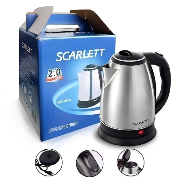 bouilloire électrique Scarlett SC-20A Capacité de 2 litres. Fabriquée en acier inoxydable.