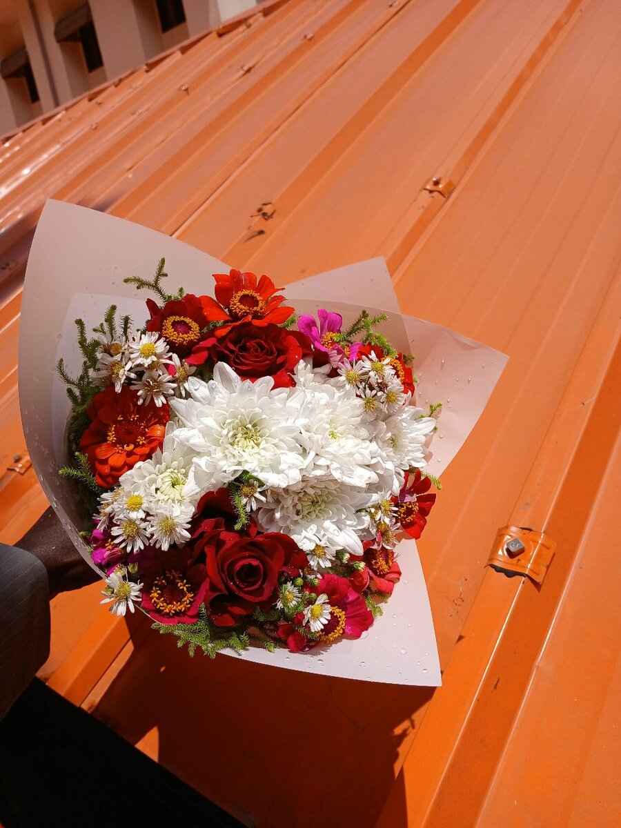 Ce magnifique bouquet de fleurs est parfait pour égayer n'importe quelle occasion. Avec une composition vibrante de roses rouges, de marguerites blanches et de fleurs colorées, il apporte une touche de fraîcheur et de joie. Idéal pour un cadeau, un événement spécial ou simplement pour égayer votre intérieur.