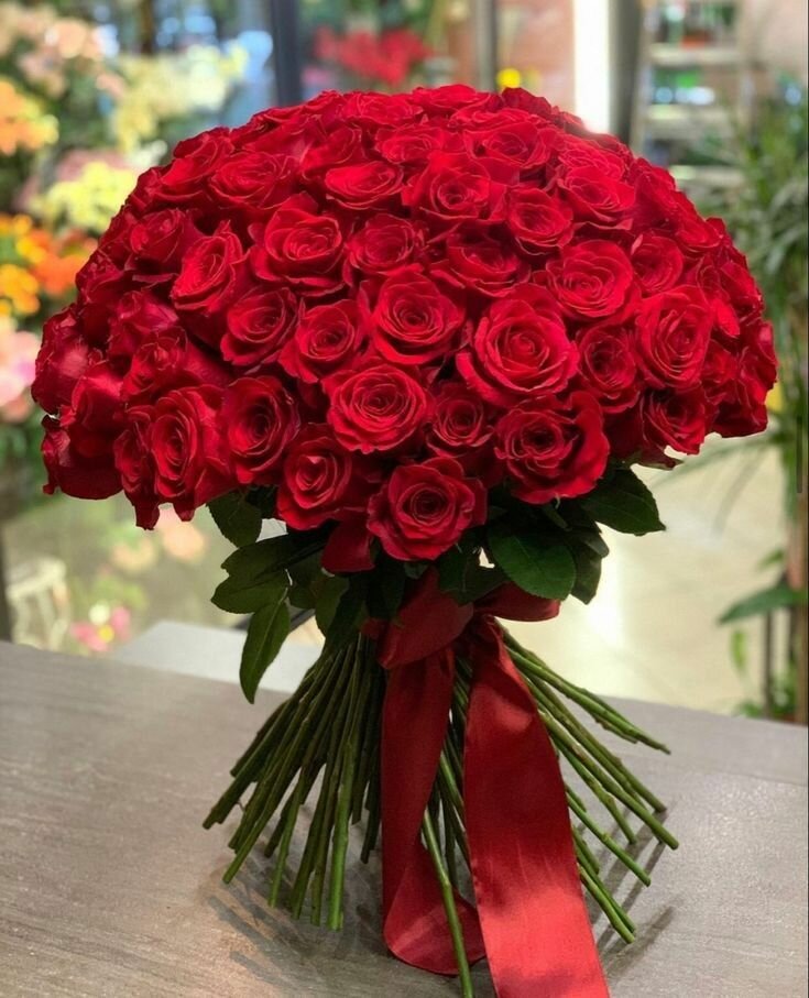 Magnifique bouquet de roses rouges fraîches, idéal pour une déclaration d'amour ou une occasion spéciale. Composé de fleurs de qualité supérieure, ce bouquet est élégamment noué avec un ruban rouge satiné.