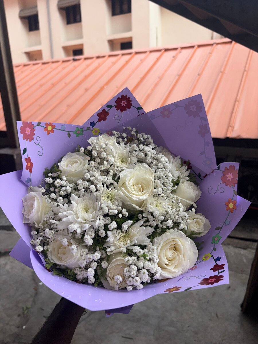 Ce superbe bouquet de fleurs blanches est idéal pour illuminer vos occasions spéciales. Composé de roses élégantes et de délicates fleurs de gypsophile, il apporte une touche de sophistication et de fraîcheur à n'importe quel décor.