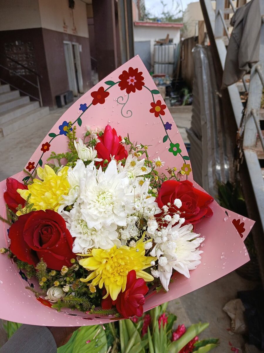 Émerveillez vos proches avec ce magnifique bouquet de fleurs ! Composé de roses rouges, de chrysanthèmes blancs et jaunes, il apporte douceur et élégance à toutes les occasions. Parfait pour les anniversaires, mariages ou comme centre de table. Offrez une touche de nature et de joie dans leur quotidien !