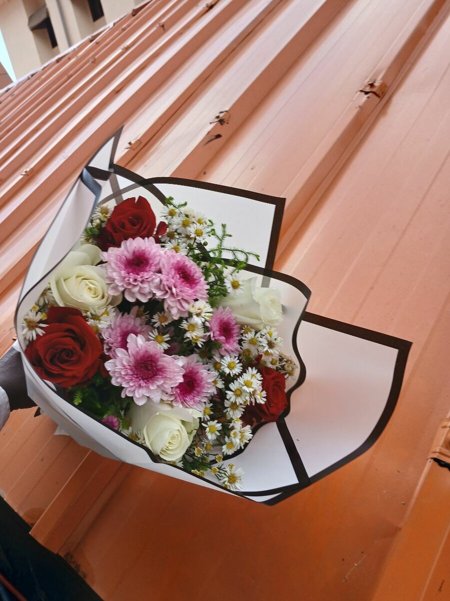 Offrez un bouquet de fleurs magnifique et élégant, parfait pour célébrer des moments spéciaux. Avec ses roses rouges, chrysanthèmes roses et marguerites blanches, il crée une harmonie de couleurs qui émerveille. Idéal pour les anniversaires, mariages ou comme geste romantique.