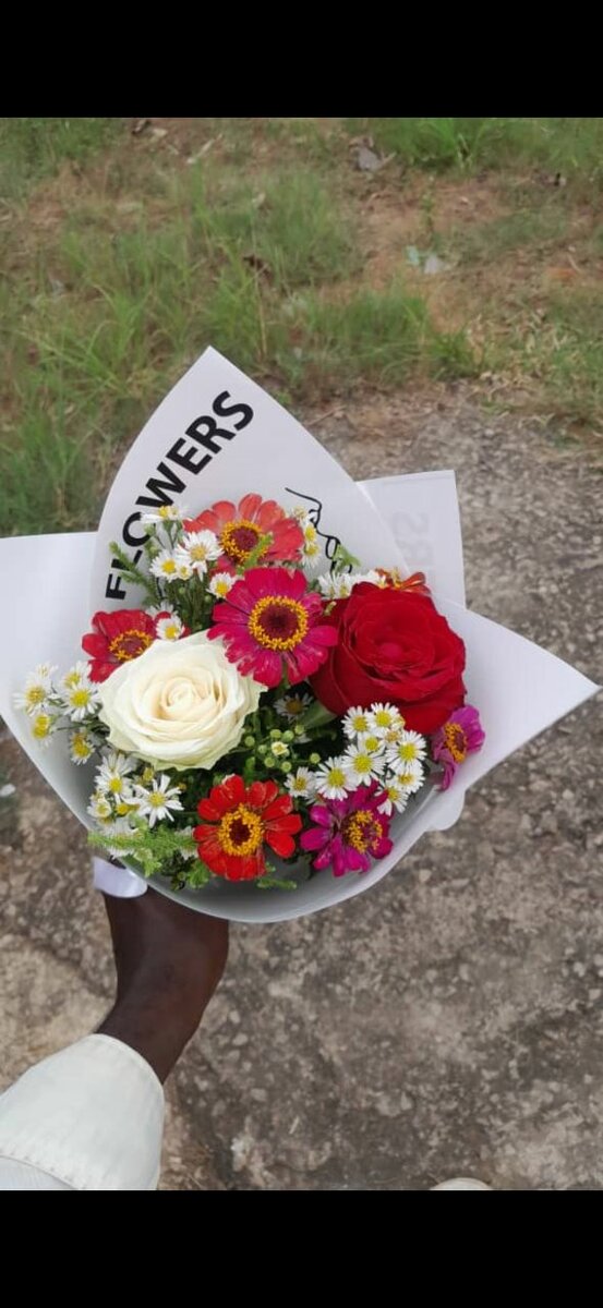 Découvrez ce magnifique bouquet de fleurs mixtes, idéal pour exprimer vos sentiments ou décorer votre intérieur. Composé de roses rouges, marguerites et autres fleurs colorées, il apportera une touche de fraîcheur et d'élégance à toute occasion. Parfait pour un cadeau ou un événement spécial.