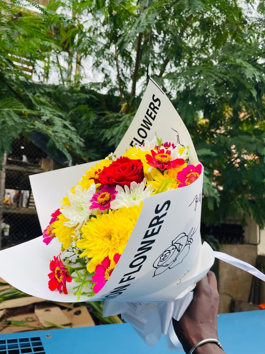 Ce magnifique bouquet de fleurs vives apportera une touche de couleur et de joie à n'importe quelle occasion. Composé de fleurs fraîches soigneusement sélectionnées, il est parfait pour exprimer vos sentiments ou simplement égayer votre intérieur. Offrez-le pour un anniversaire, une fête ou comme geste attentionné. Un choix idéal pour surprendre et ravir vos proches.