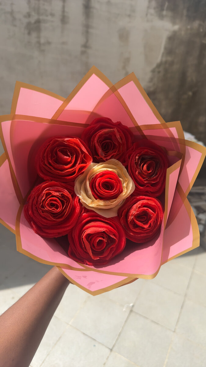 Ravissant bouquet de fleurs en crêpes. Parfait pour les occasions spéciales ou comme cadeau unique et commestible .