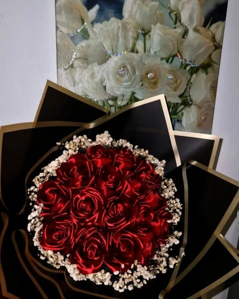 Bouquet de roses en satin