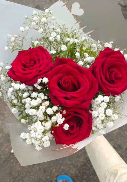 Offrez ce somptueux bouquet de roses rouges entouré de délicates fleurs blanches pour exprimer vos sentiments les plus sincères. Parfait pour les anniversaires, les fêtes ou simplement pour faire plaisir à un être cher. Ce bouquet apporte une touche de romance et de beauté à toute occasion.