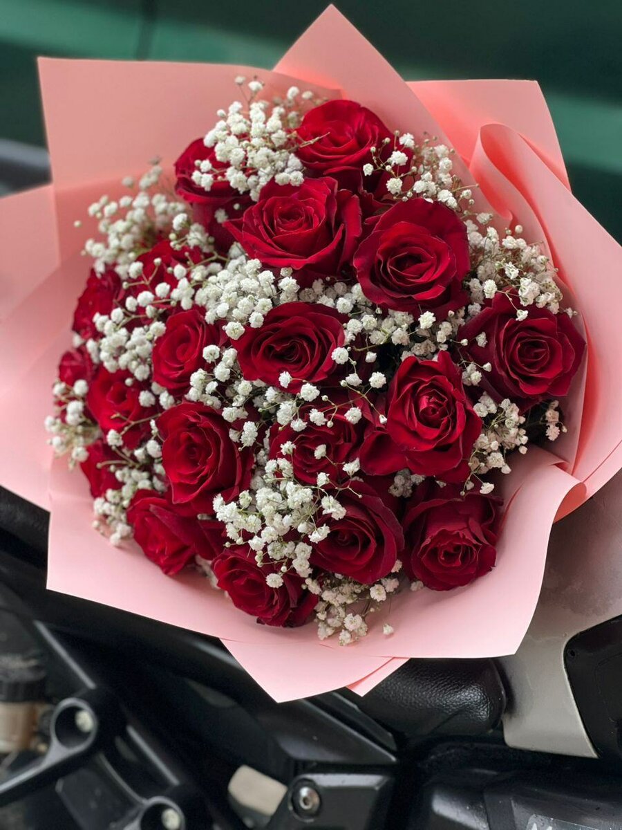 Offrez un bouquet de roses rouges envoûtantes, parfait pour exprimer vos sentiments profonds. Chaque rose est entourée de délicats gypsophiles, créant une harmonie visuelle parfaite. Idéal pour les occasions spéciales comme les anniversaires, les anniversaires de mariage ou simplement pour rappeler votre affection. Ce bouquet saura toucher le cœur de votre proche et illuminer sa journée.