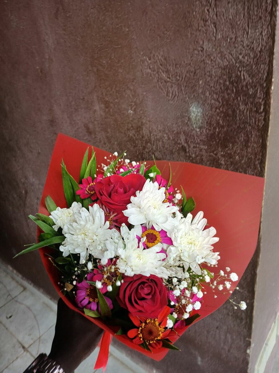 Ce magnifique bouquet de roses rouges et marguerites blanches est idéal pour exprimer votre amour et affection. Parfait pour un anniversaire, une fête ou simplement pour égayer votre journée. Ajoutez une touche florale élégante à n'importe quel moment.