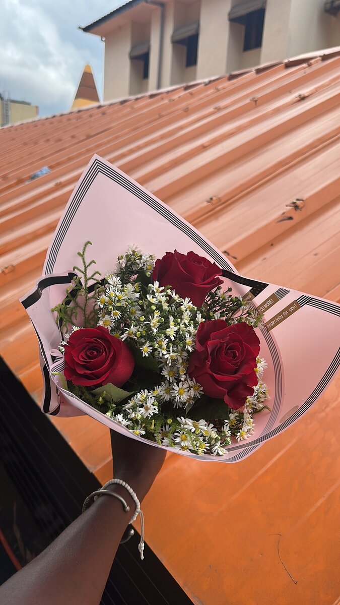 Ce bouquet de roses rouges, sublimé par des fleurs blanches délicates, est le cadeau idéal pour exprimer vos sentiments. Parfait pour les anniversaires, mariages et occasions spéciales, il apportera une touche élégante et romantique pour rendre unique chaque moment.