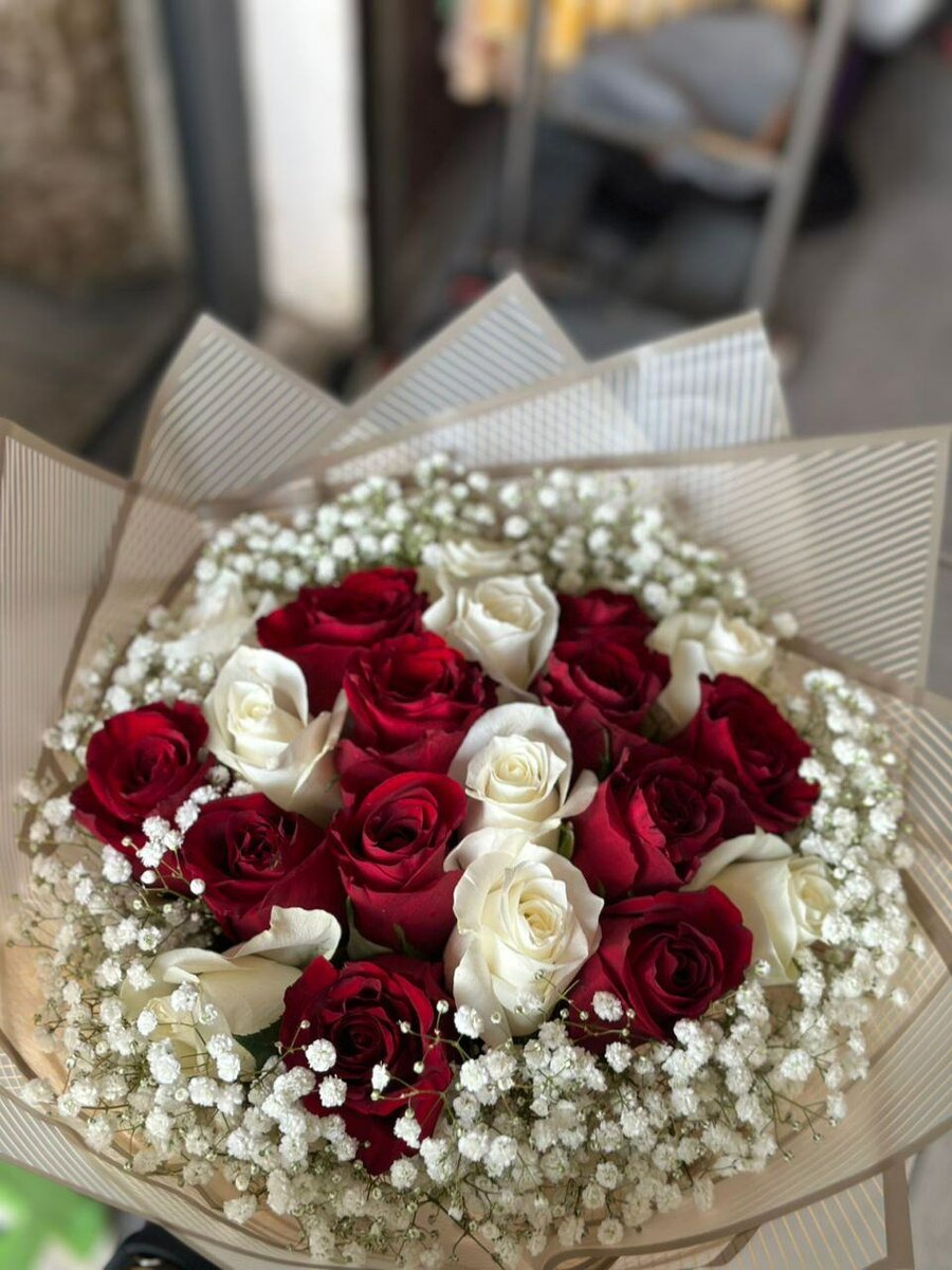 Offrez ce magnifique bouquet de roses rouges et blanches, parfait pour exprimer l'amour et l'admiration. Chaque fleur est soigneusement sélectionnée pour sa beauté éclatante. Idéal pour les anniversaires, mariages ou occasions spéciales. Un cadeau intemporel qui séduira tous les cœurs.