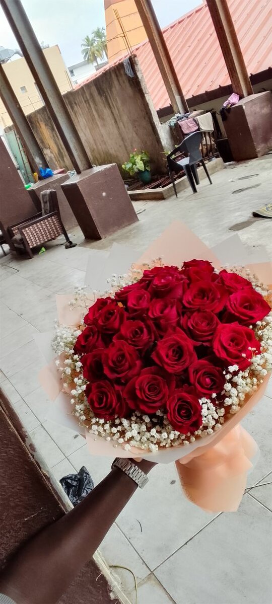 Ce magnifique bouquet de roses rouges est parfait pour exprimer vos sentiments les plus profonds. Idéal pour les anniversaires, mariages ou toute occasion spéciale. Les roses sont soigneusement arrangées avec du gypsophile pour une touche élégante et raffinée. Offrez-le à quelqu'un de spécial et apportez de la joie avec cette élégance florale intemporelle.