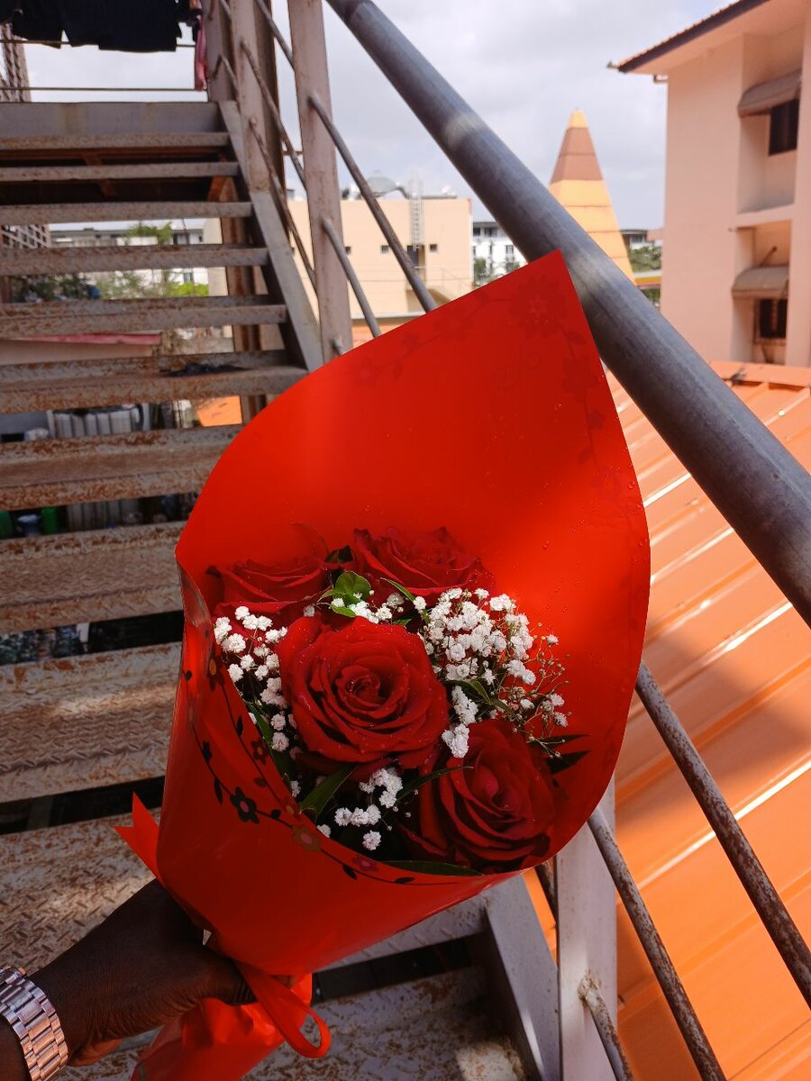 Bouquet de roses et chocolats
