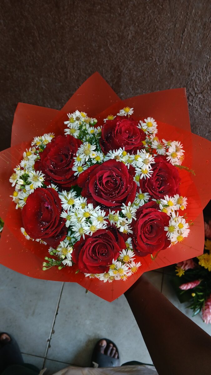 Bouquet de roses et marguerites