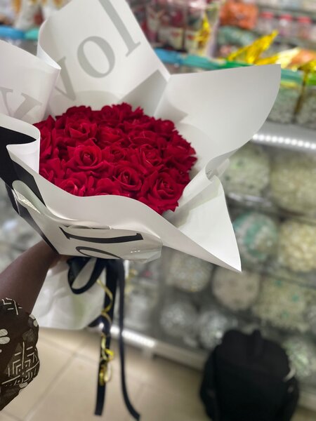 Ce magnifique bouquet de roses rouges accompagné dun petit dej à offrir tôt le matin à sa perle ou son roi ️