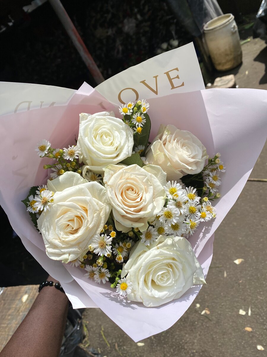 Offrez une touche d'élégance avec ce magnifique bouquet de roses blanches et marguerites. Idéal pour célébrer des occasions spéciales ou apporter une note de douceur au quotidien. Parfait pour déclarer votre amour ou embellir votre intérieur avec délicatesse.