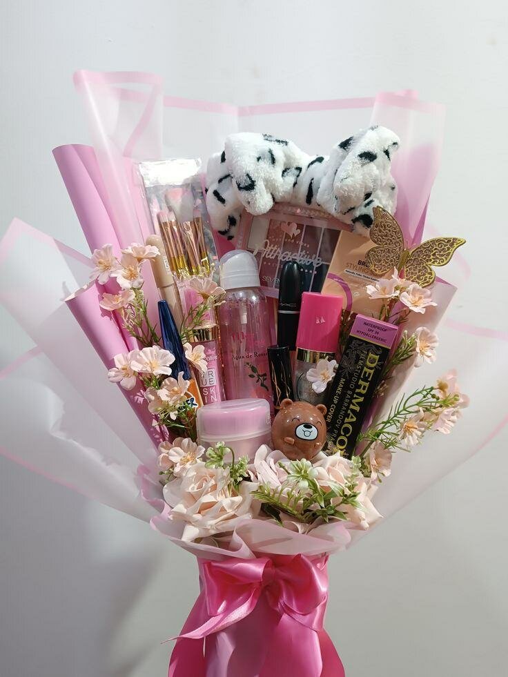 Découvrez notre bouquet unique combinant cosmétiques et douceurs. Idéal pour offrir, ce bouquet est une surprise parfaite pour les passionnés de beauté et les gourmands. Il contient des produits de qualité, le tout magnifiquement présenté.