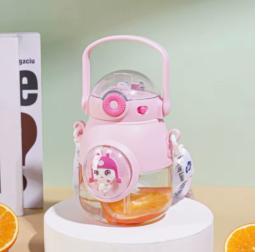 Bouteille à eau amusante pour enfants avec motifs colorés et bandoulière pratique. Favorise l'hydratation tout en s'amusant. Parfaite pour l'école ou les sorties.