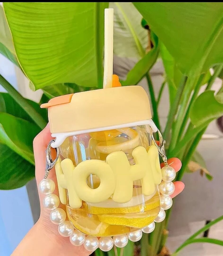 Profitez de vos boissons préférées avec cette bouteille élégante. Son design moderne et son décor perlé attirent le regard. Idéale pour smoothies, jus ou eau. Facile à porter avec sa poignée charmante, elle est parfaite pour le bureau, la salle de sport ou vos promenades.
