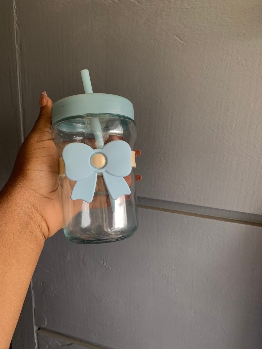 adorable bouteille en verre avec couvercle et paille intégrés . Son design mignon avec un nœud bleu est parfait pour attirer l'attention des enfants tout en rendant l'hydratation amusante et sûre. Idéale pour l'eau, le jus ou tout autre liquide froid, c'est un choix parfait pour la maison ou en déplacement. Facile à nettoyer et à utiliser.