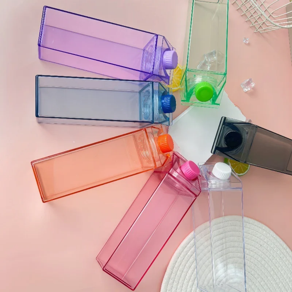 Bouteille d'eau en verre avec une forme unique et des couleurs vives. Parfaite pour transporter et stocker des boissons, idéale pour une utilisation quotidienne, en plein air ou à la maison.