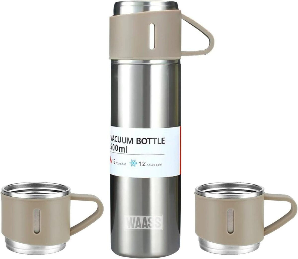 Gardez vos boissons chaudes ou froides pendant 12 heures avec cette bouteille isotherme de 500ml. Parfaite pour les voyages, le bureau ou les activités extérieures. Comprend deux tasses pratiques.
