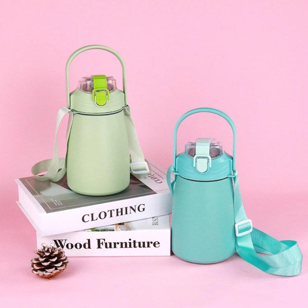 Simplifiez votre hydratation en déplacement avec notre bouteille isotherme portable. Dotée d'une bandoulière pratique, elle est idéale pour le bureau, la salle de sport ou les voyages. Sa double paroi en inox maintient vos boissons à la température parfaite, chaude ou froide. Compacte et élégante, cette bouteille est votre compagnon idéal pour une hydratation optimisée.