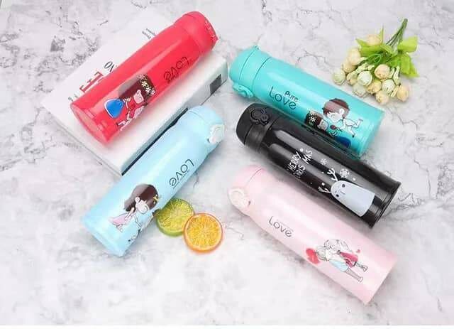 Bouteille thermos mignonne avec motifs de couple. Parfaite pour conserver vos boissons chaudes ou froides. Un cadeau idéal pour les amoureux. Capacité généreuse et étanche.