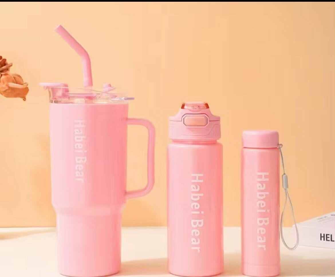 Découvrez notre ensemble de bouteilles d'eau Habei Bear, disponible en plusieurs couleurs vives. Idéal pour le sport, le bureau ou les voyages, cet ensemble inclut une grande bouteille avec paille, une bouteille polyvalente et un thermos compact. Fait de matériaux durables et légers, il gardera vos boissons fraîches où que vous soyez. Parfait pour tous vos besoins quotidiens d'hydratation!