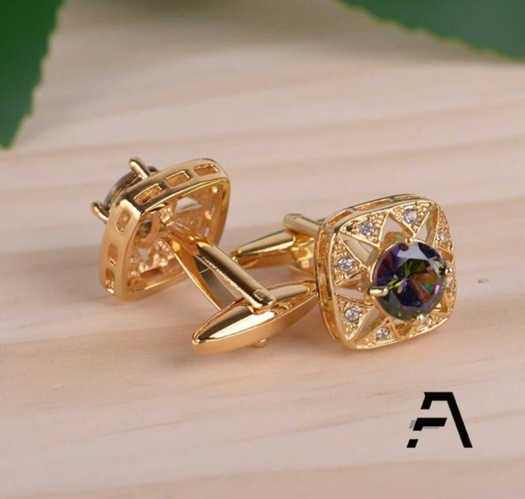 Ajoutez une touche de sophistication à votre tenue avec ces boutons de manchette dorés ornés de pierres scintillantes. Parfaits pour vos occasions