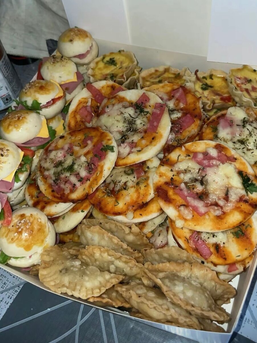 Mini pizza, pastels,mini burgers..etc