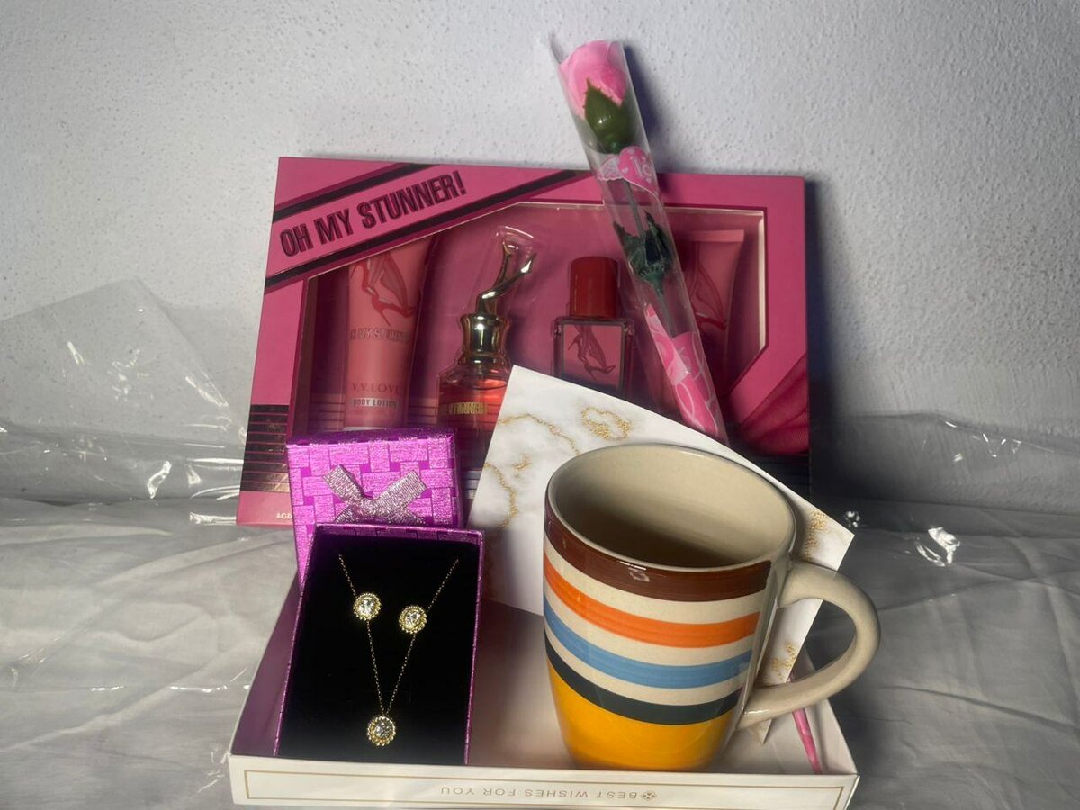 Composition : -Une sublime coffrets de parfums -Une chaîne dans un magnifique coffret -Une sublime tasse -Une rose -Une lettre
