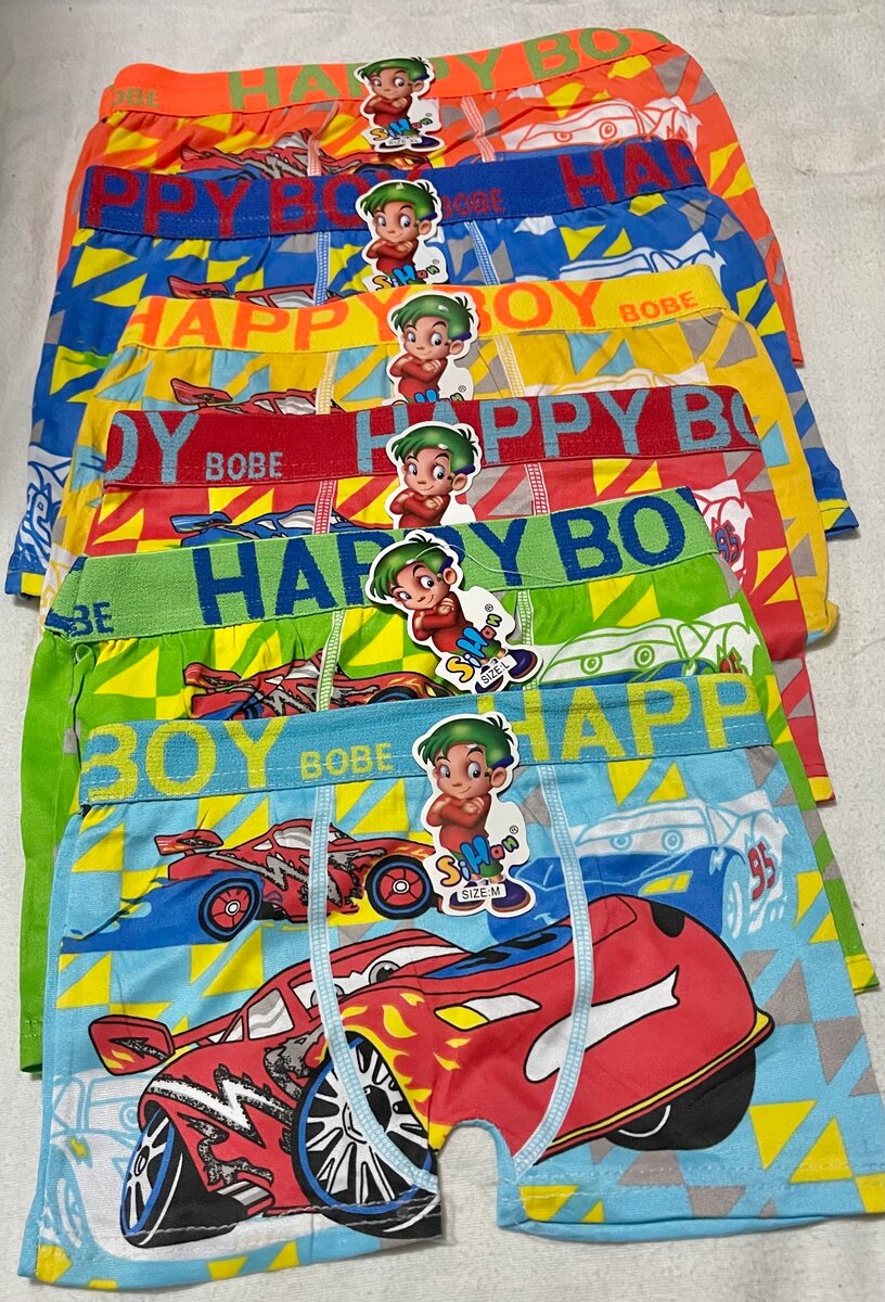 Lot de boxers enfant en coton doux avec des motifs colorés de voitures et personnages. Conçus pour offrir confort et style aux petits aventuriers.