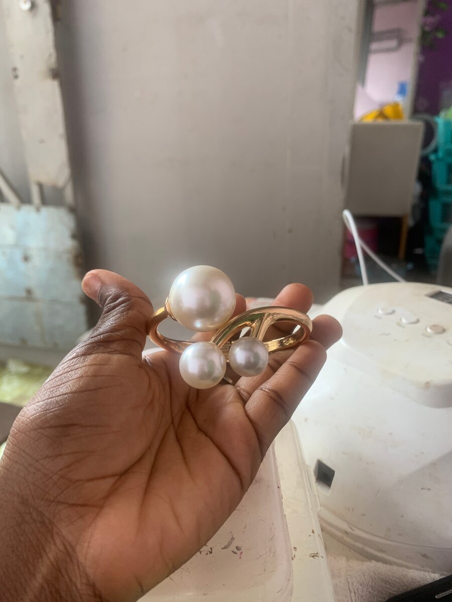 Cette bague en or élégante avec perles est le choix parfait pour une touche de sophistication. Idéale pour les occasions spéciales, elle complète parfaitement toute tenue. Le design moderne avec des perles subtilement brillantes ajoute une touche de luxe discrète à votre style.