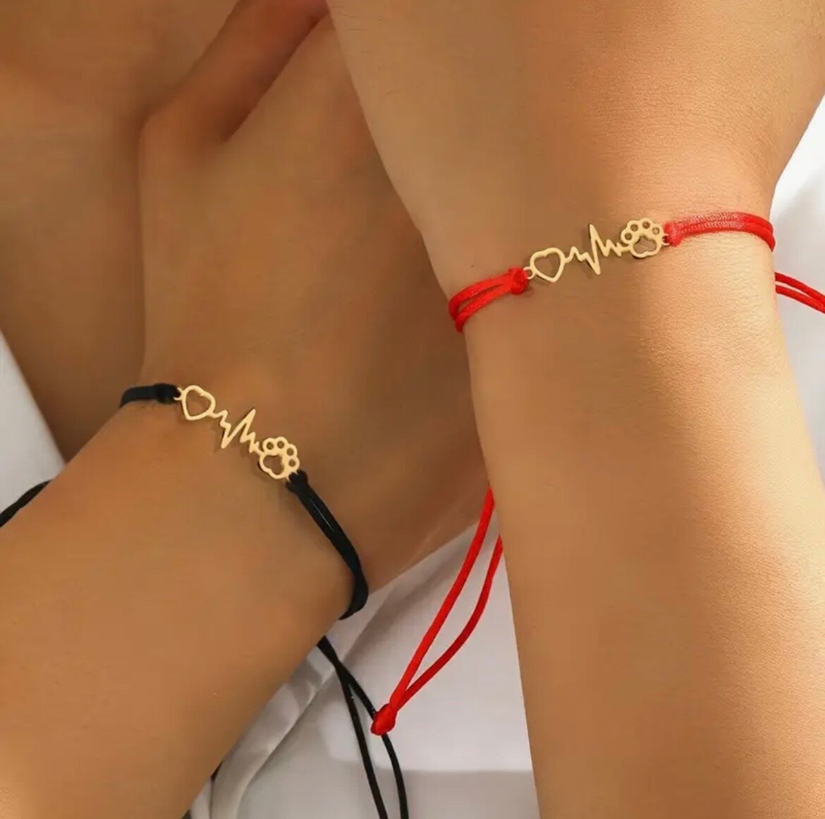 Bracelet tendance avec pendentif pattes et coeur. Idéal pour les amoureux des animaux, en corde ajustable. Portez-le pour montrer votre passion.