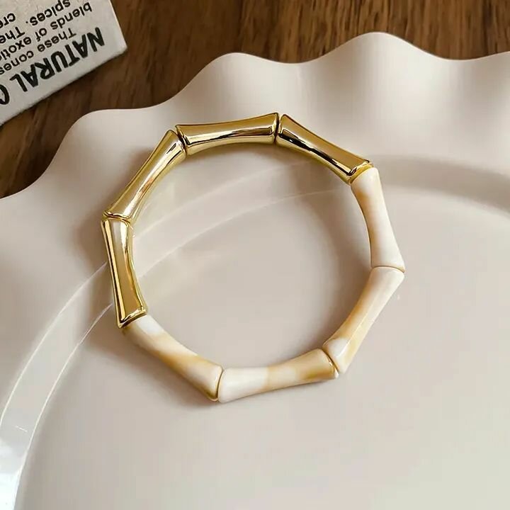 Ajoutez une touche d'élégance avec notre bracelet en forme de bambou doré. Parfait pour toutes occasions, il offre un style unique et raffiné qui se démarque. Fabriqué avec des matériaux de haute qualité, il est le choix idéal pour compléter votre tenue.
