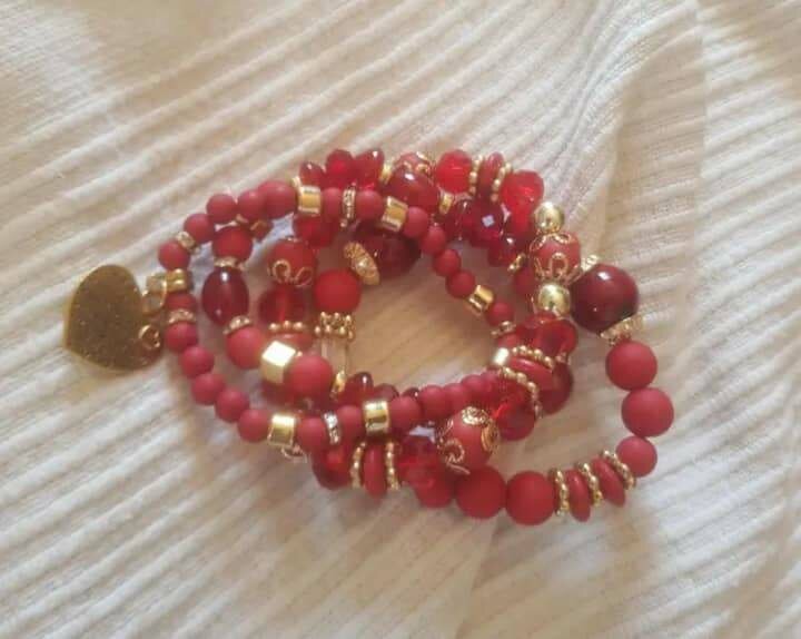 Ensemble de bracelets bohèmes avec perles colorées et pendentifs en forme de cœur. Idéal pour un look chic et décontracté.