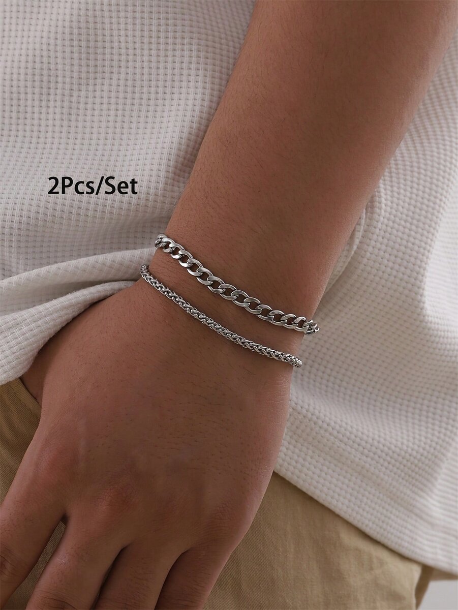 Set de 2 bracelets pour homme, élégants et résistants en acier inoxydable. Parfaits pour un style chic et moderne, conviennent à toutes les occasions. Idéal pour offrir.